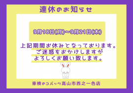 9月23日(土)は祝日ですが営業日となっておりますのでお気を付けください